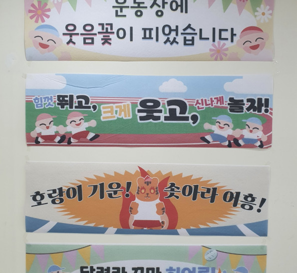 운동회에 빼놓을 수 없는 슬로건 4종세트 운동회 분위기를 한껏 올리지요