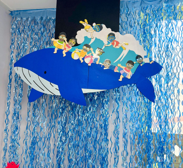 여름환경구성, 여름 포토존, 여름 교실환경. 여름교실, 여름 가랜드, 여름천장, 바다, 동물, 고래, 고래포토존, 여름, 여름교재