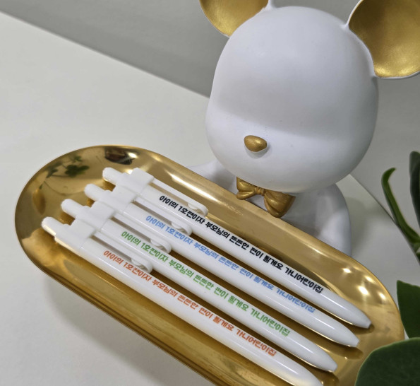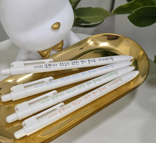 애기 이름으로 이번 설날에 어린이집 선생님들 선물 2행시 해서 준비했어요 선생님들 인원이 많아서 담임선생님것만 준비해야하나 생각하고 있다가 볼펜 저렴한데 퀄리티도 너무 좋아서 선생님들 인원수만큼 넉넉하게 주분하는데도 가격 부담도 없고 진짜 빨리 설날와서 얼른 드리고싶어요! 좋아하실게 상상되네요ㅋㅋㅋ