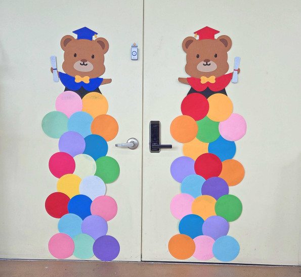 졸업 곰돌이 풍선기둥 포토존으로 현관분위기가 확 살아나지요.
